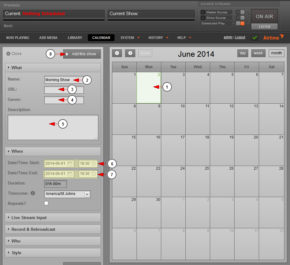 Once audio files are uploaded and a show is created you can start streaming on your radio channel.