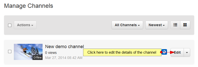 On Manage Channels page, click on Edit button for the channel you want to edit: